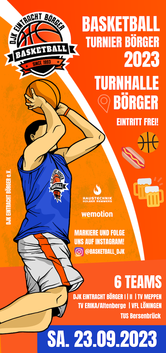 Wir freuen uns, Ihnen mitteilen zu können, dass unser hoch erwartetes Basketballturnier am 23. September stattfindet. Insgesamt 6 Teams aus der Region freuen sich auf auf dieses Turnier und es verspricht spannende Wettkämpfe.